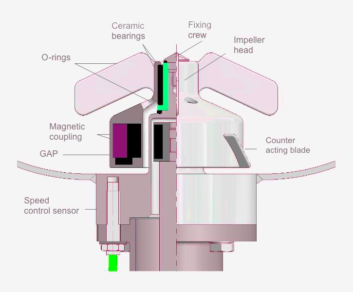 Another set of magnets is attached to the part of the housing that corresponds to the impeller.